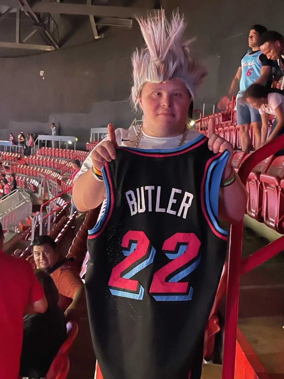 Nicholas proudly displaying his Jimmy Butler jersey and in full head gear as we cheered on the Miami Heat to victory over the Atlanta Hawks.