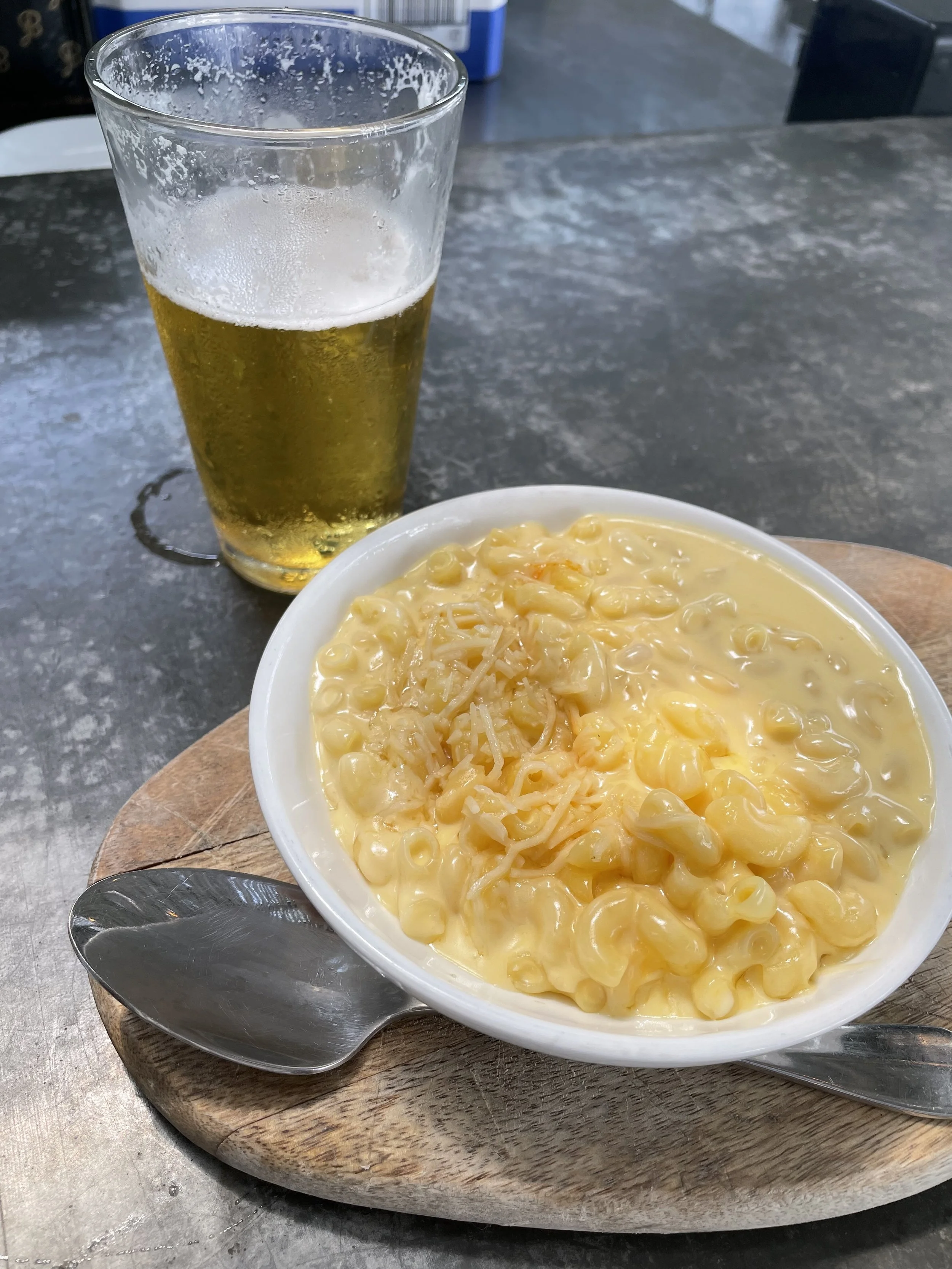 Mac ‘n cheese and a Stella Artois draft at Blvd. Bae’s.