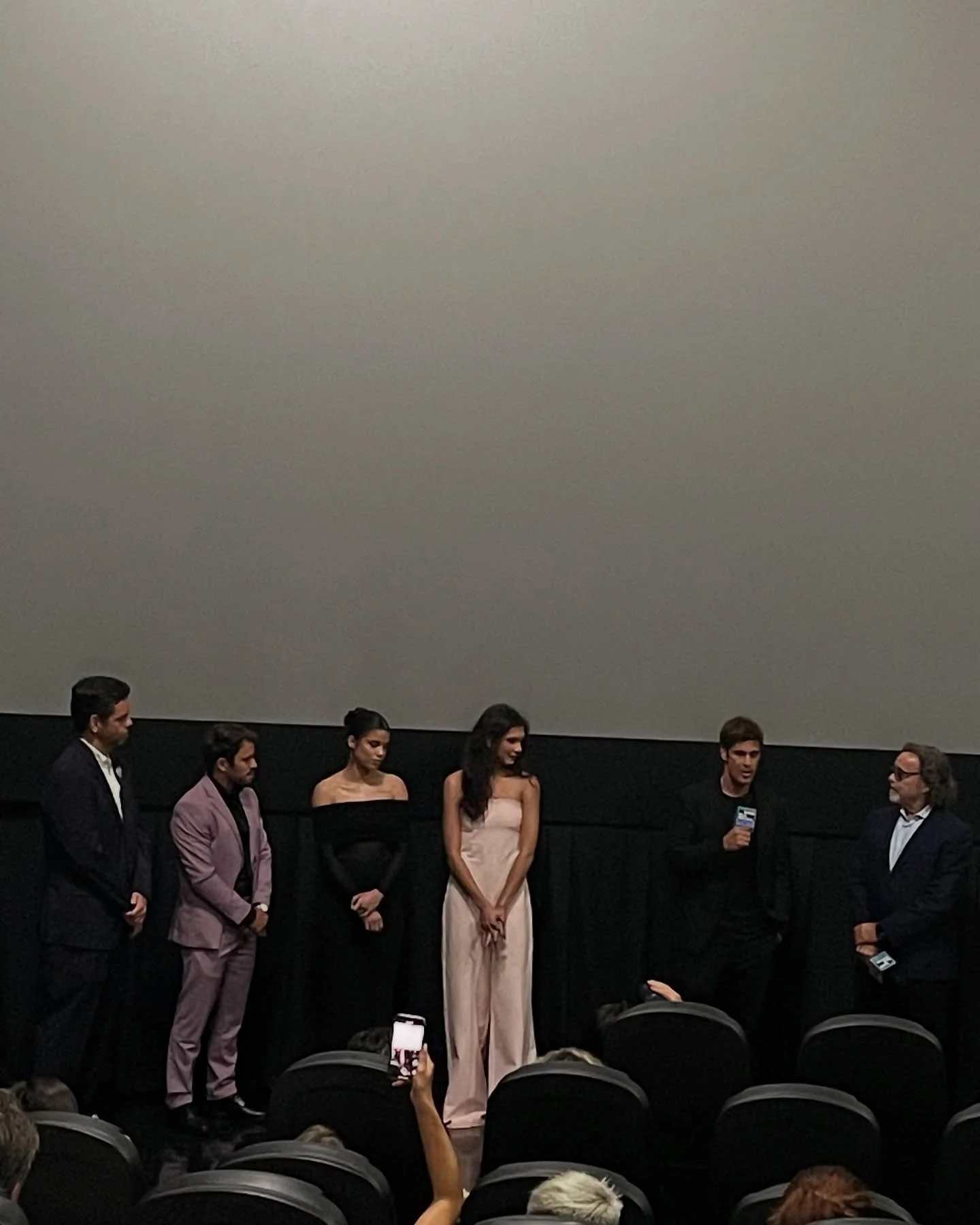 Host for the Miami Film Festival screening of “Malecon” Alejandro Rios on the far right. Speaking is the film’s director Carlos Larrazabal and next to him are a few of the film’s cast members.