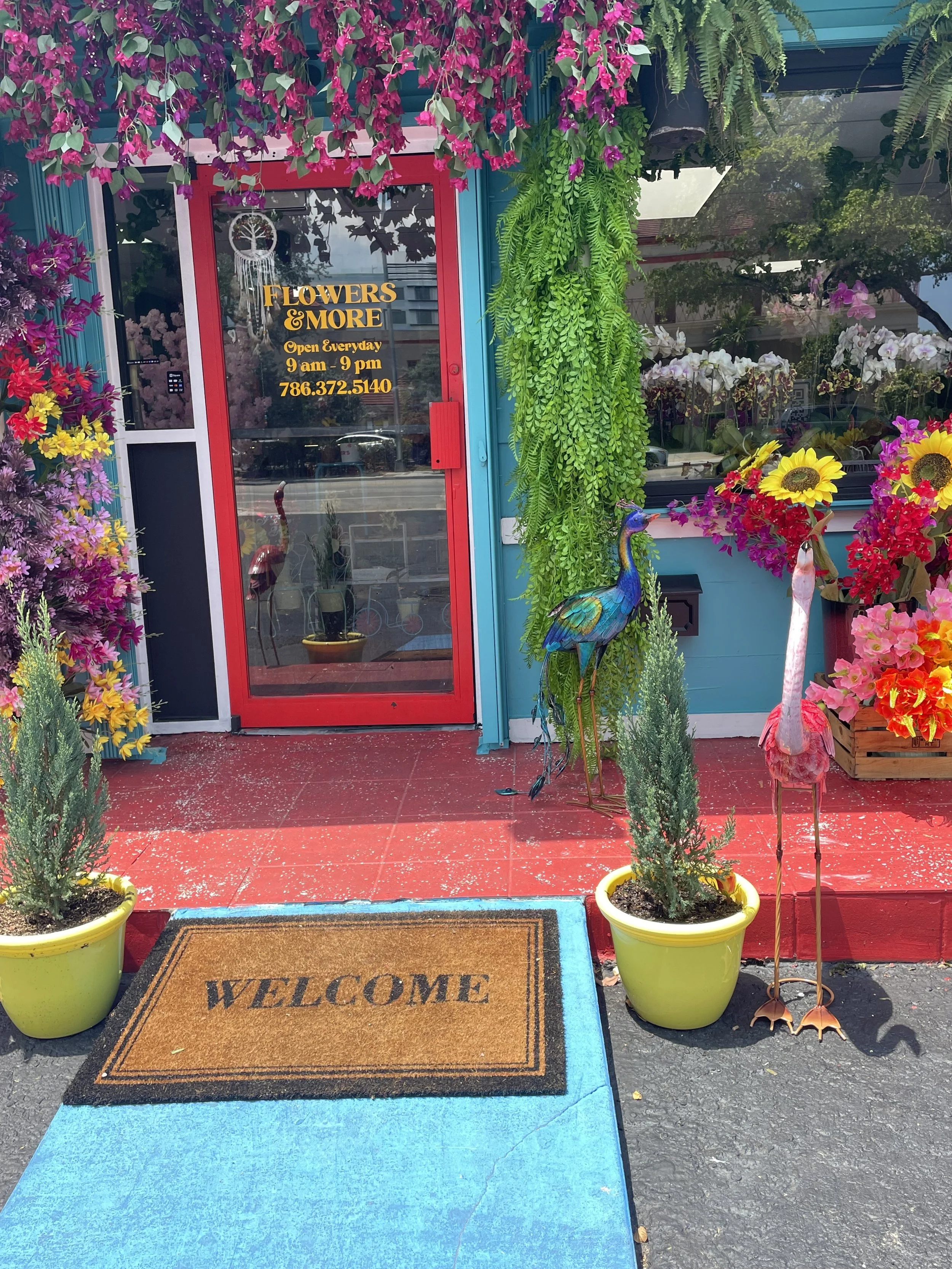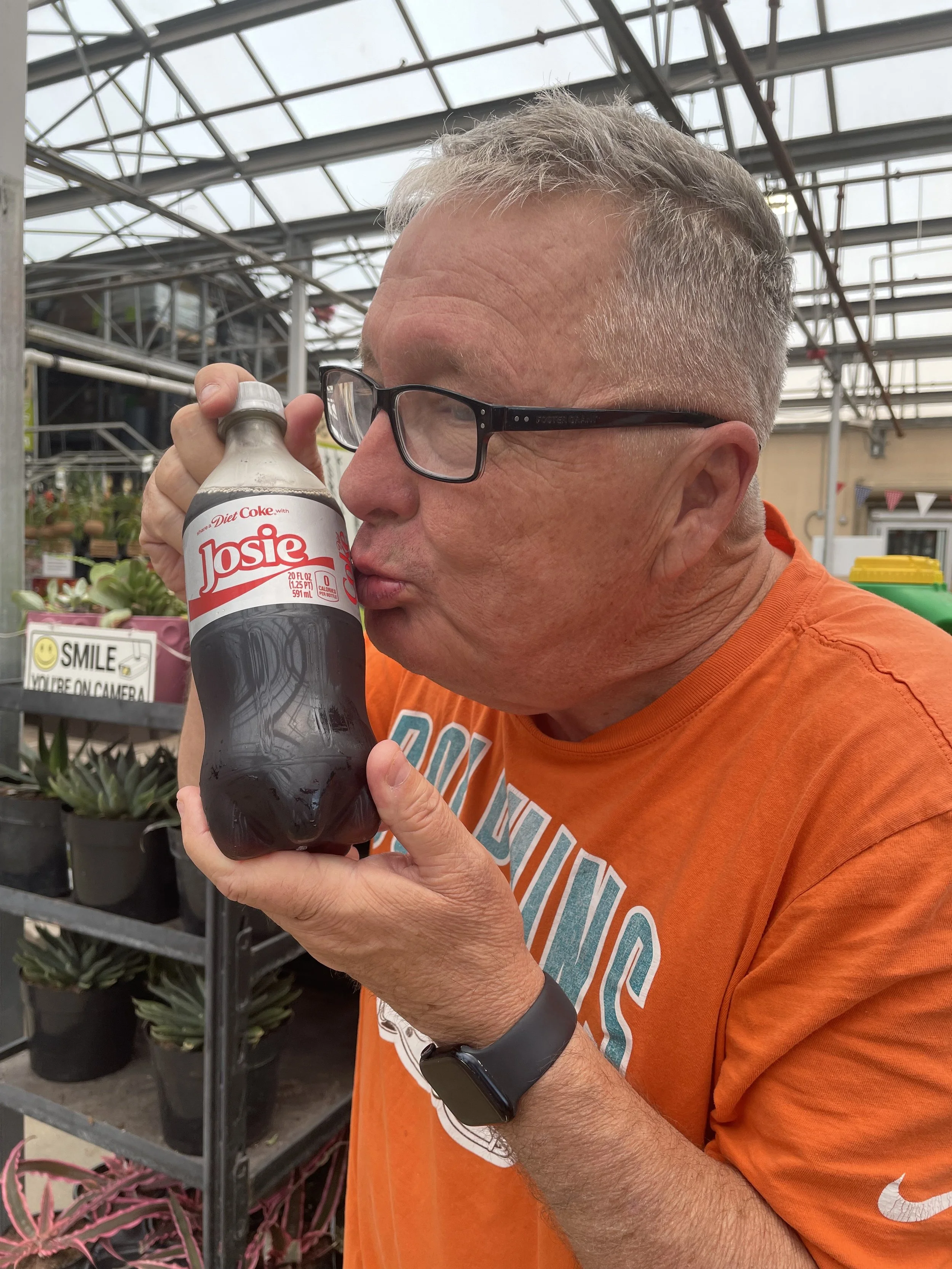And here are a couple of parting photos. One of Vance being silly at Home Depot (the Diet Coke bottle has my name on it) and the other of a cute flower store, Flowers & More, that opened just a few blocks up the street from our house.