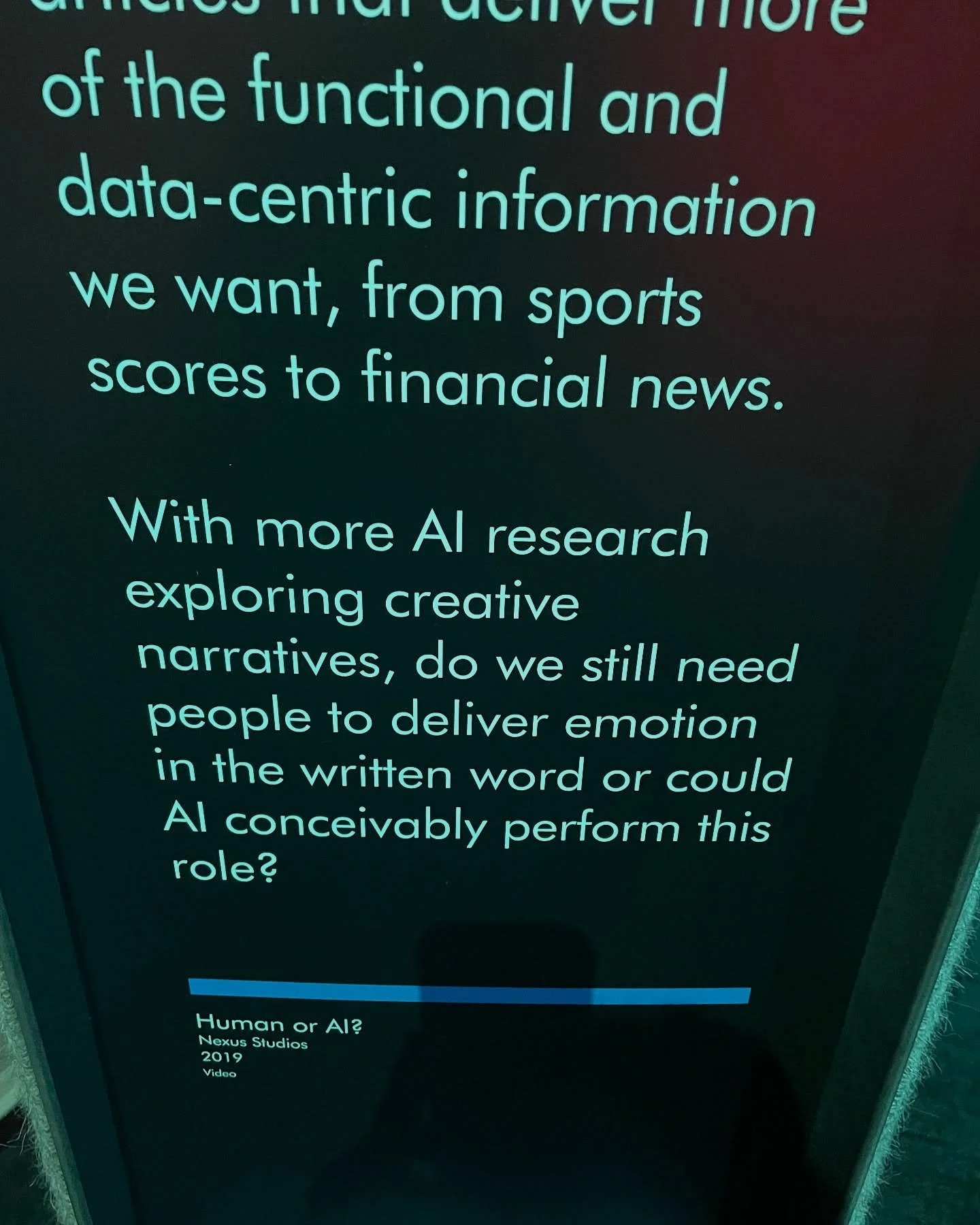 So, Vance and I attended the Members Preview of the exhibition on Friday night. They’ve got an interesting take on the subject, providing a timeline for how AI has evolved, taking it back to the first glimpses of it hundreds of years ago. I’d say it’s an interesting show with plenty of interactive areas and worth a visit. The photos above are of the specific areas that spoke to me.
