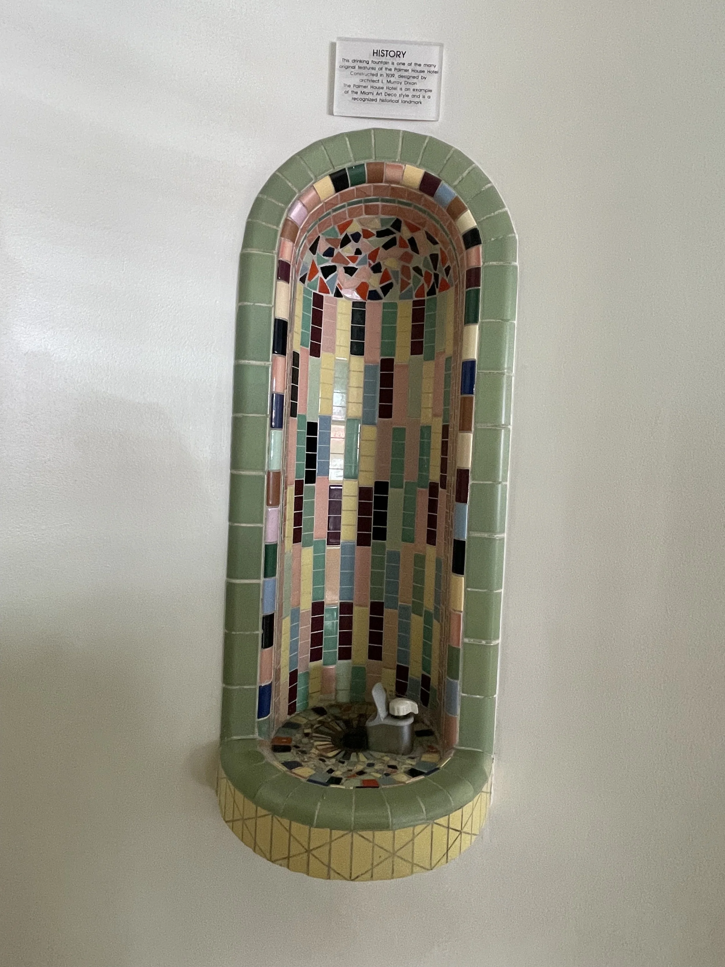 Gorgeous mosaic feature around this water fountain in one of the hotel lobbies on our tour.