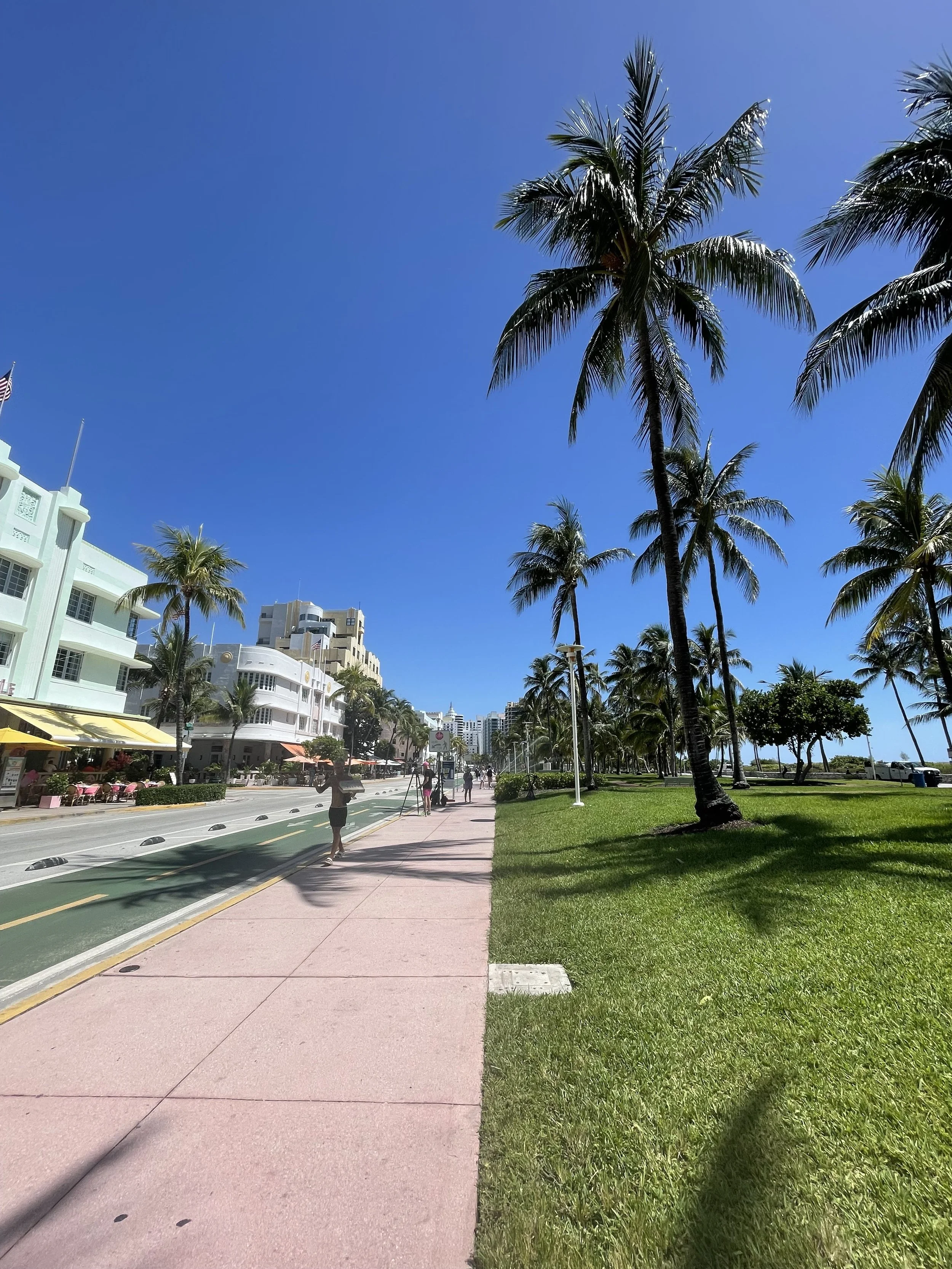 Blue skies over Ocean Drive during our Art Deco District tour.
