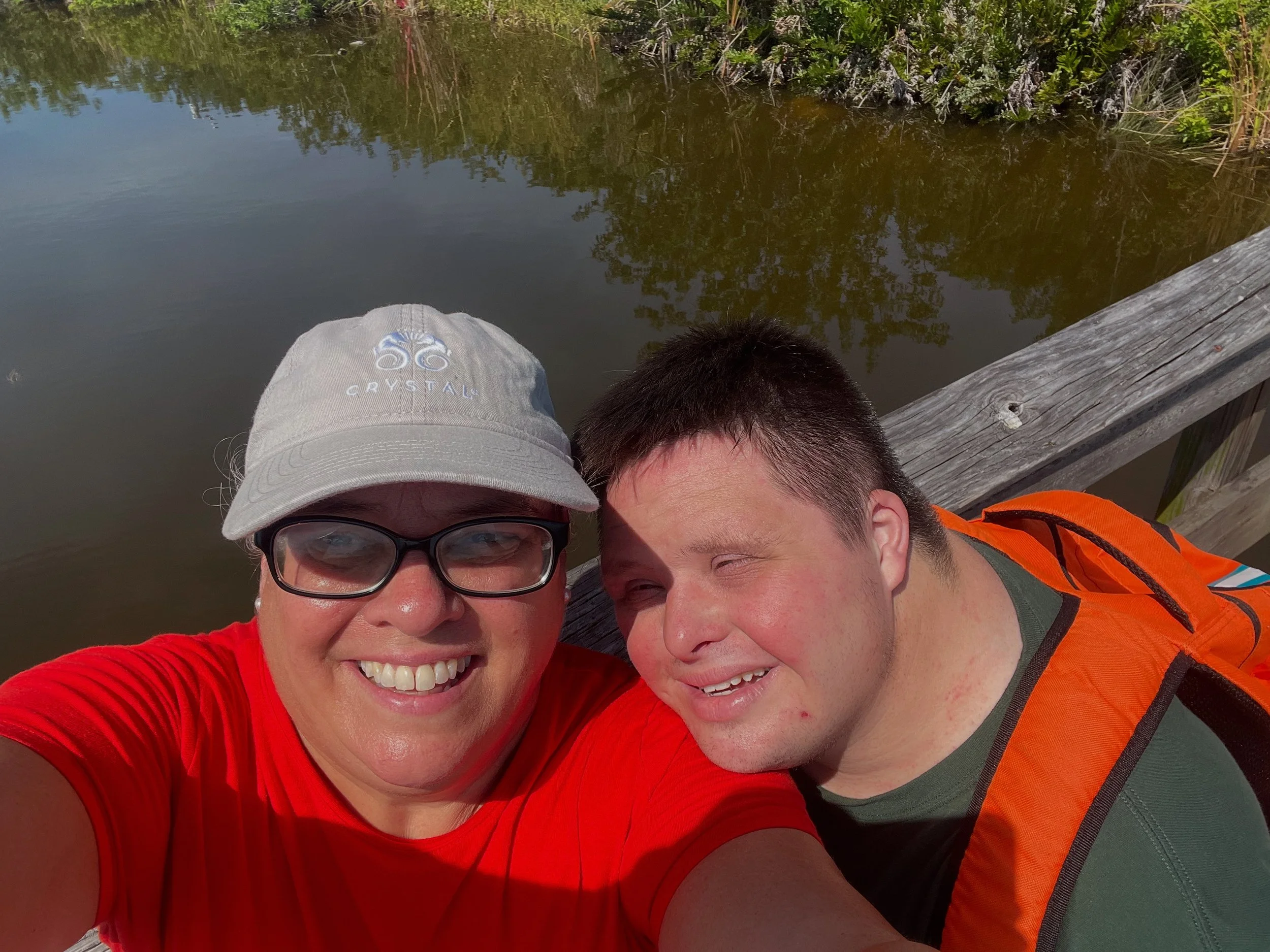 Later in the day, I braved the sweltering heat and took Nick to shoot hoops at our favorite park Kelly Park East by the Banana River. After about 15 minutes he was done (I don’t blame him, it was so hot!) and he and I walked to the end of a short boardwalk to look out on the water. That’s us in the picture above, squinting into the August sun.