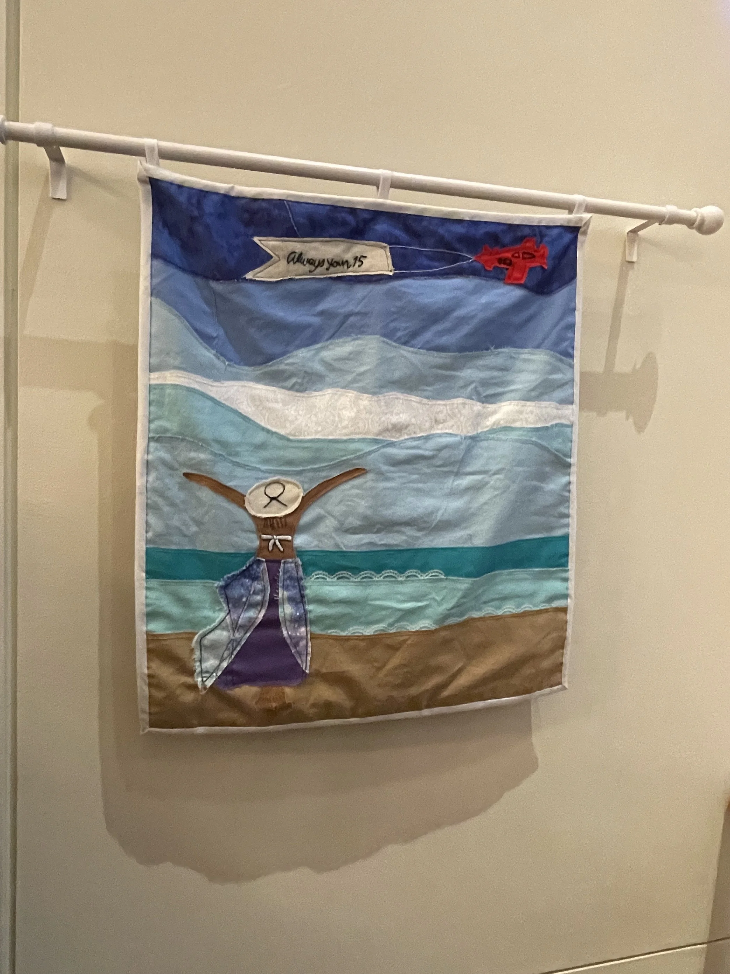 Rosa’s fiber art piece “Always Your 15,” created for Officer Martineau.