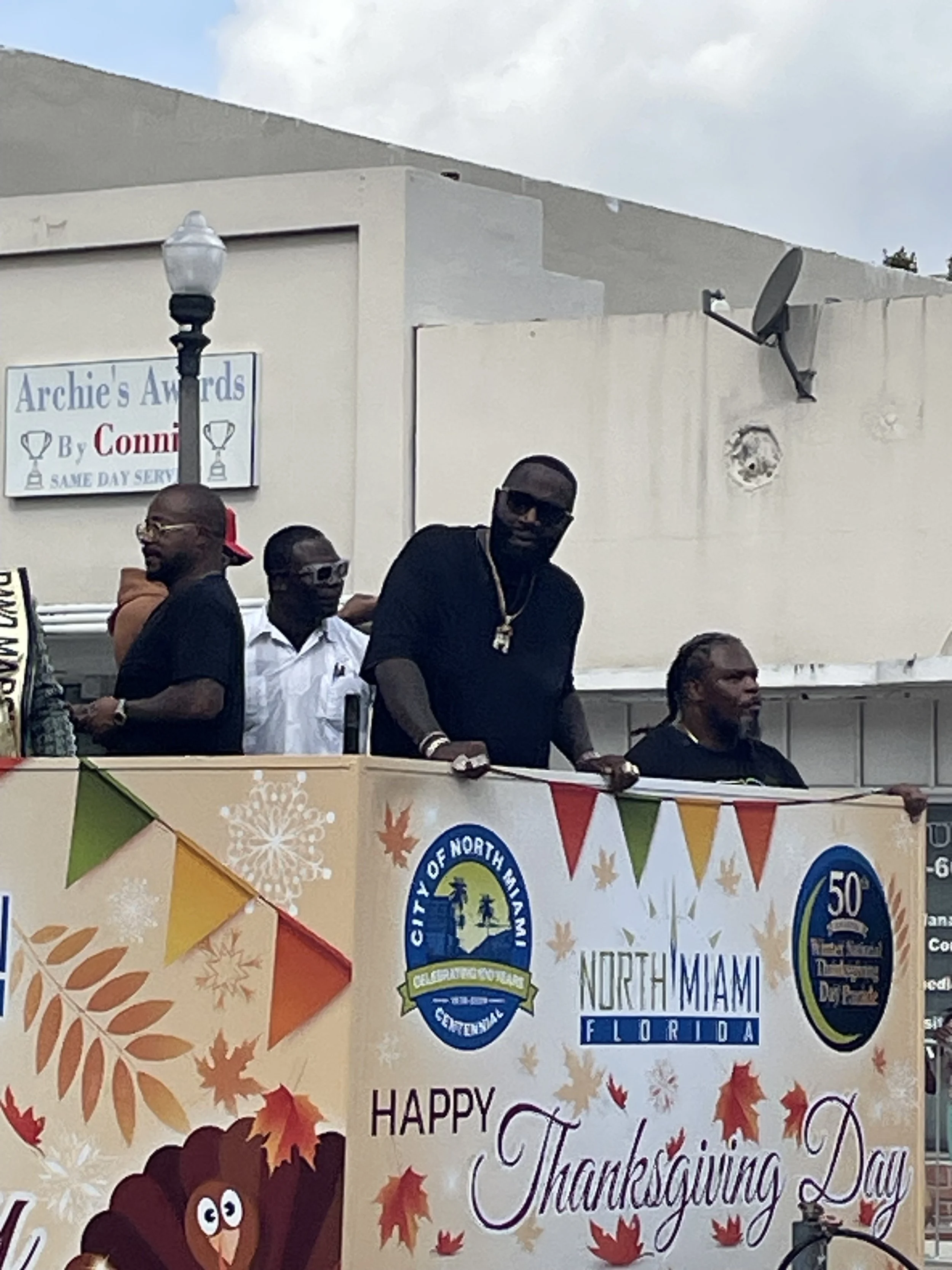 And yesterday we kicked off Thanksgiving Day by keeping our tradition and attending the North Miami Winternational Parade which this year celebrated it’s 50th Anniversary. Rapper/entertainment mogul/entrepreneur Rick Ross was the Parade Marshall. Elizabeth, who arrived in Miami late Wednesday night, came too, with her boyfriend David. Afterwards, we went back to the house, Michael and Elizabeth cooked up some delicious sides and we took them down to my sister Susy’s house, where we celebrated Thanksgiving with my sisters, nieces and their kids.