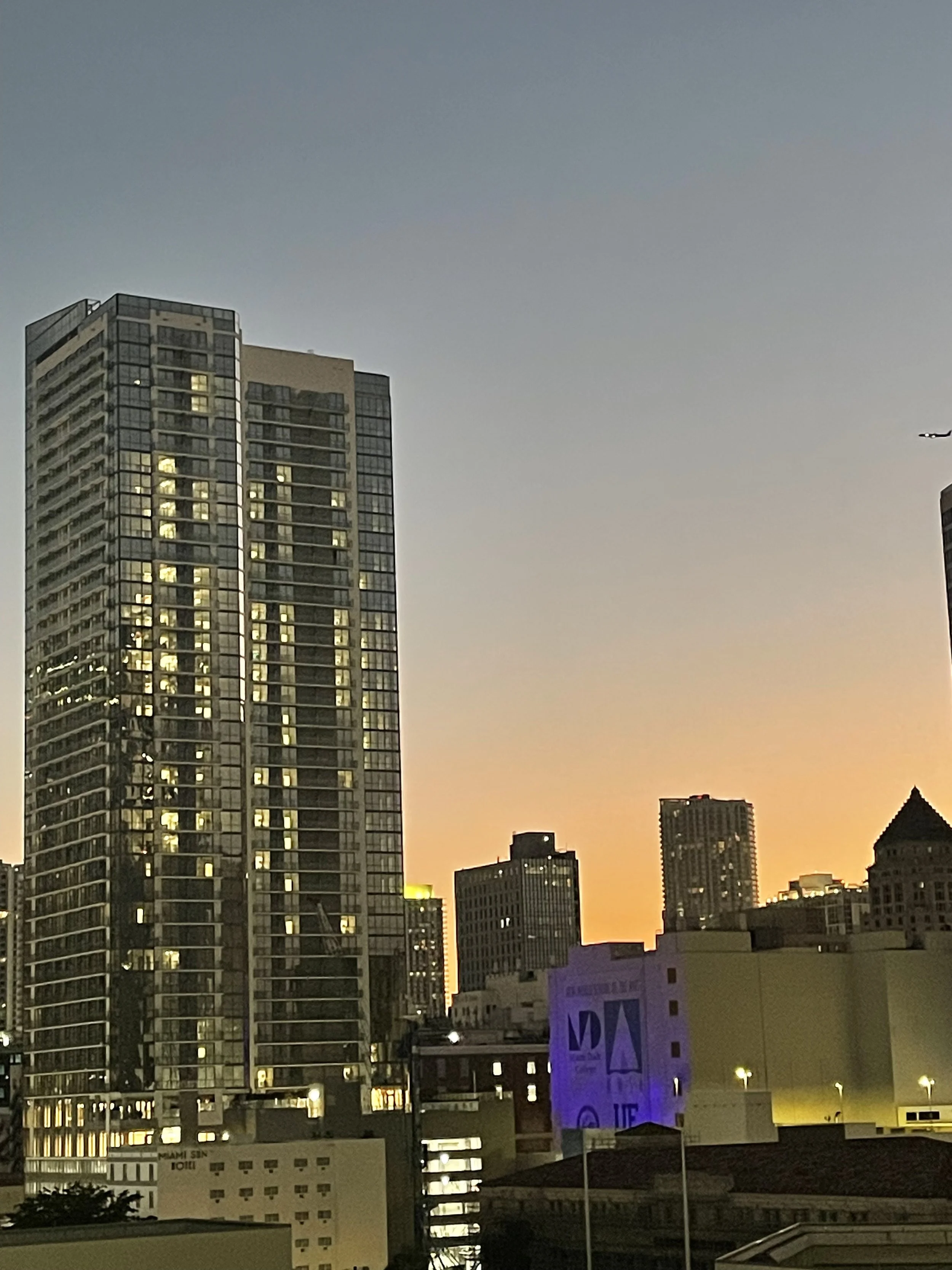 Sunset from the parking lot at the end of our day at the Miami Book Fair.
