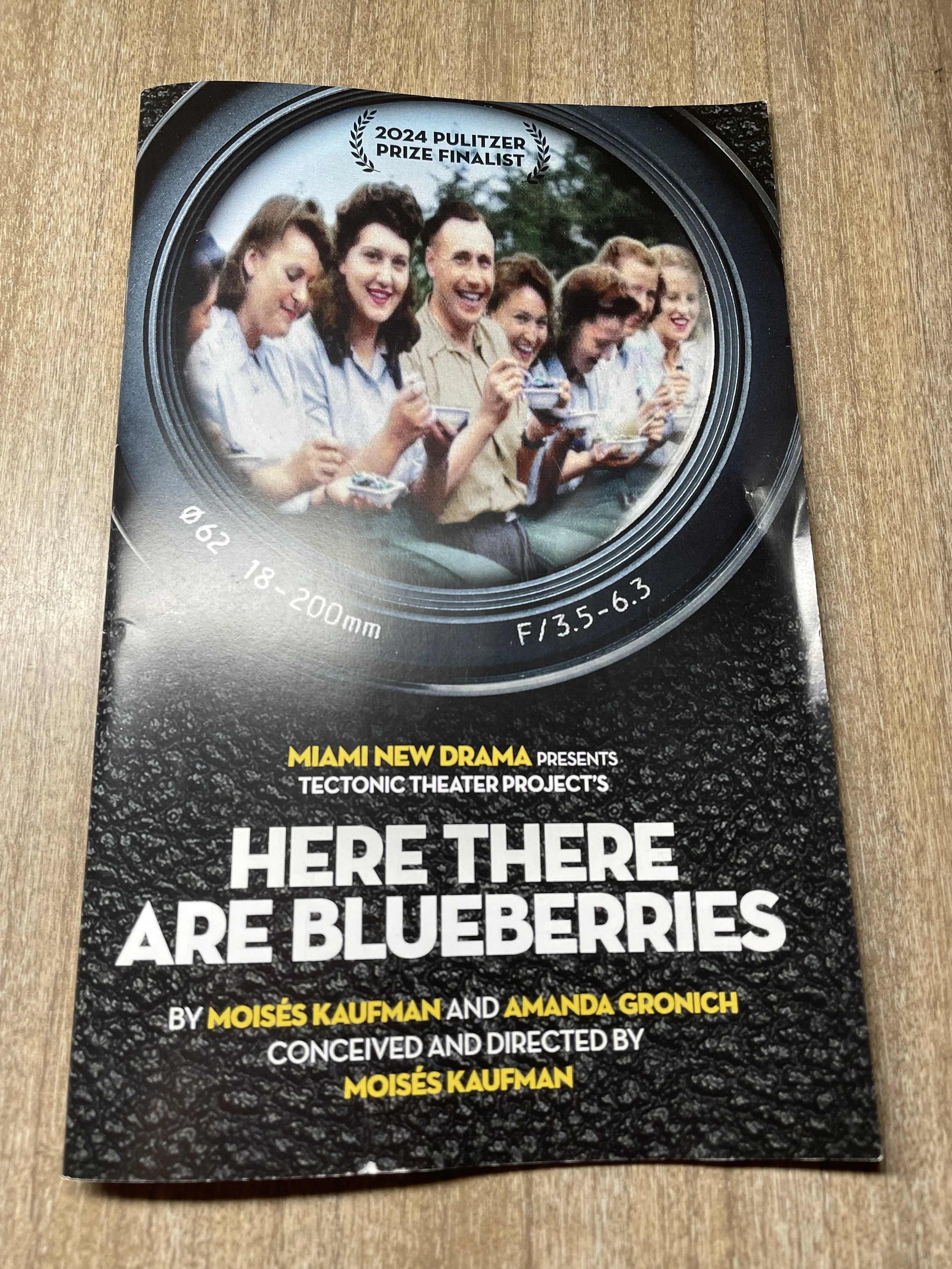 If you’ll recall, last Friday I mentioned I was going to the play “Here There Are Blueberries,” Miami New Drama’s latest production at the Colony Theater on Miami Beach. It was a heart wrenching show with stellar performances delivering an emotional and difficult story with heartfelt emotion and grit. It tells a story about the Holocaust and the ordinary, everyday lives led by the SS officers of the Third Reich led during that horrific period as seen in a scrapbook that is discovered many years later. I highly recommend seeing it, which you can do until Dec. 14. I shared a link to a review last week so check that out before you go.