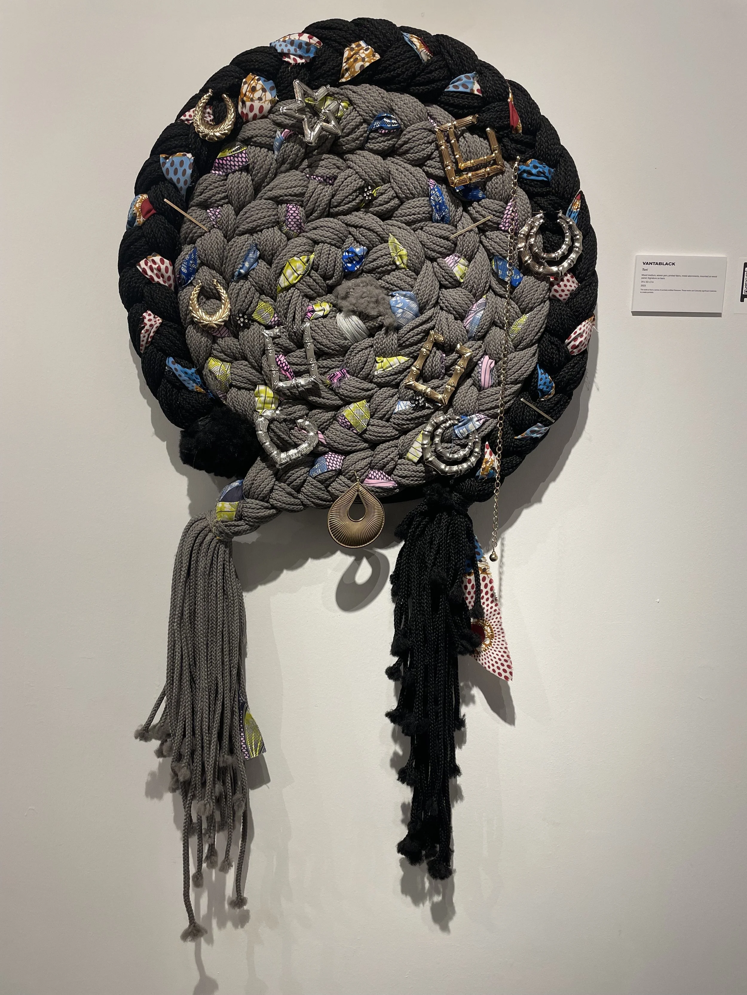 A piece by local artist Vanta Black on display at Revolt Art Fair. Because I’m a fan of her work, I was able to identify it as hers right away. I have also interviewed her and written about her installations many times.