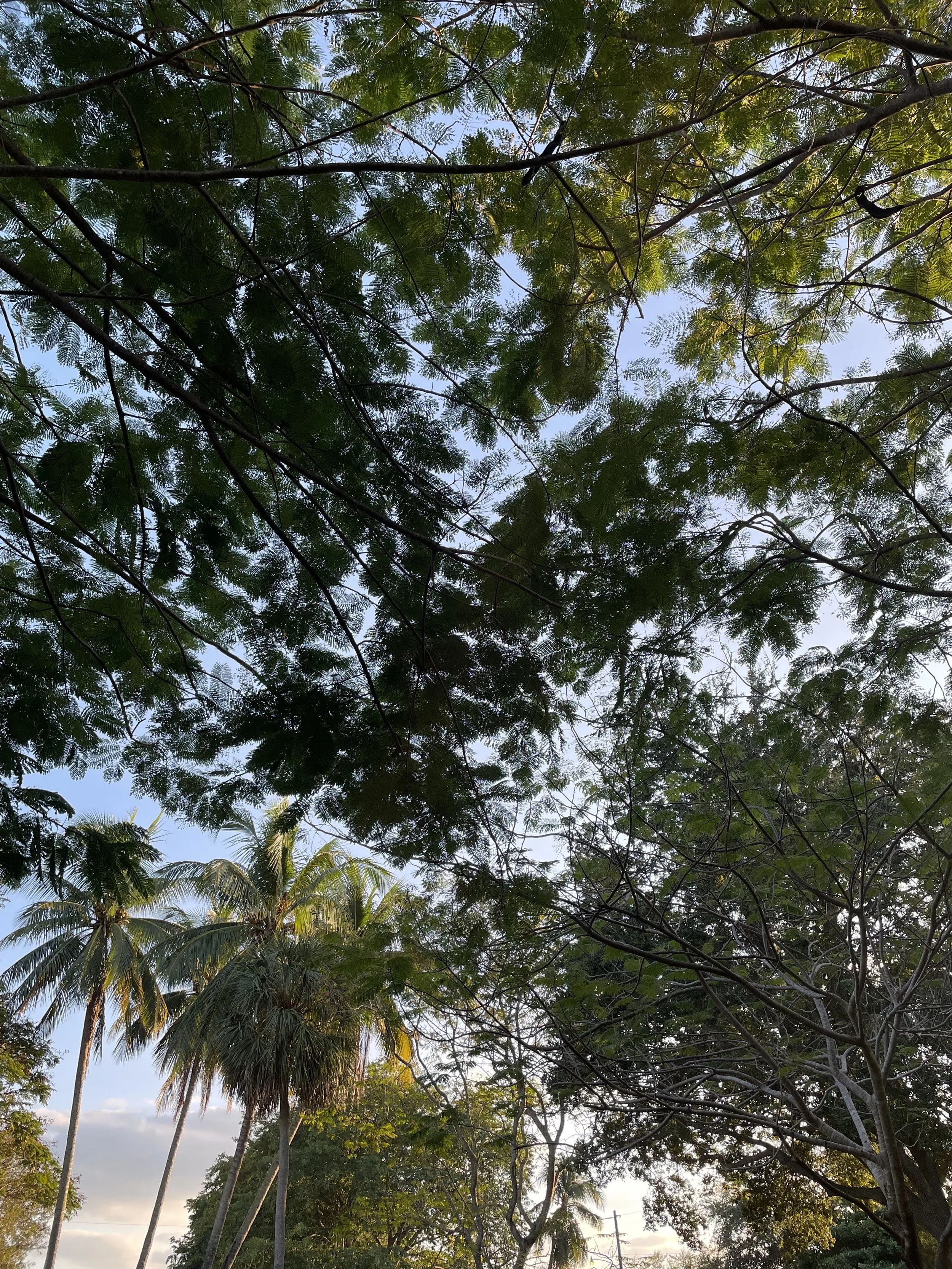 In the meantime, I leave you with a look at the Christmas decorations at Casa Gulliksen, last night’s lovely full moon and a picture of a gorgeous tree I sat under at Ed Burke Park during one of my walks this week.