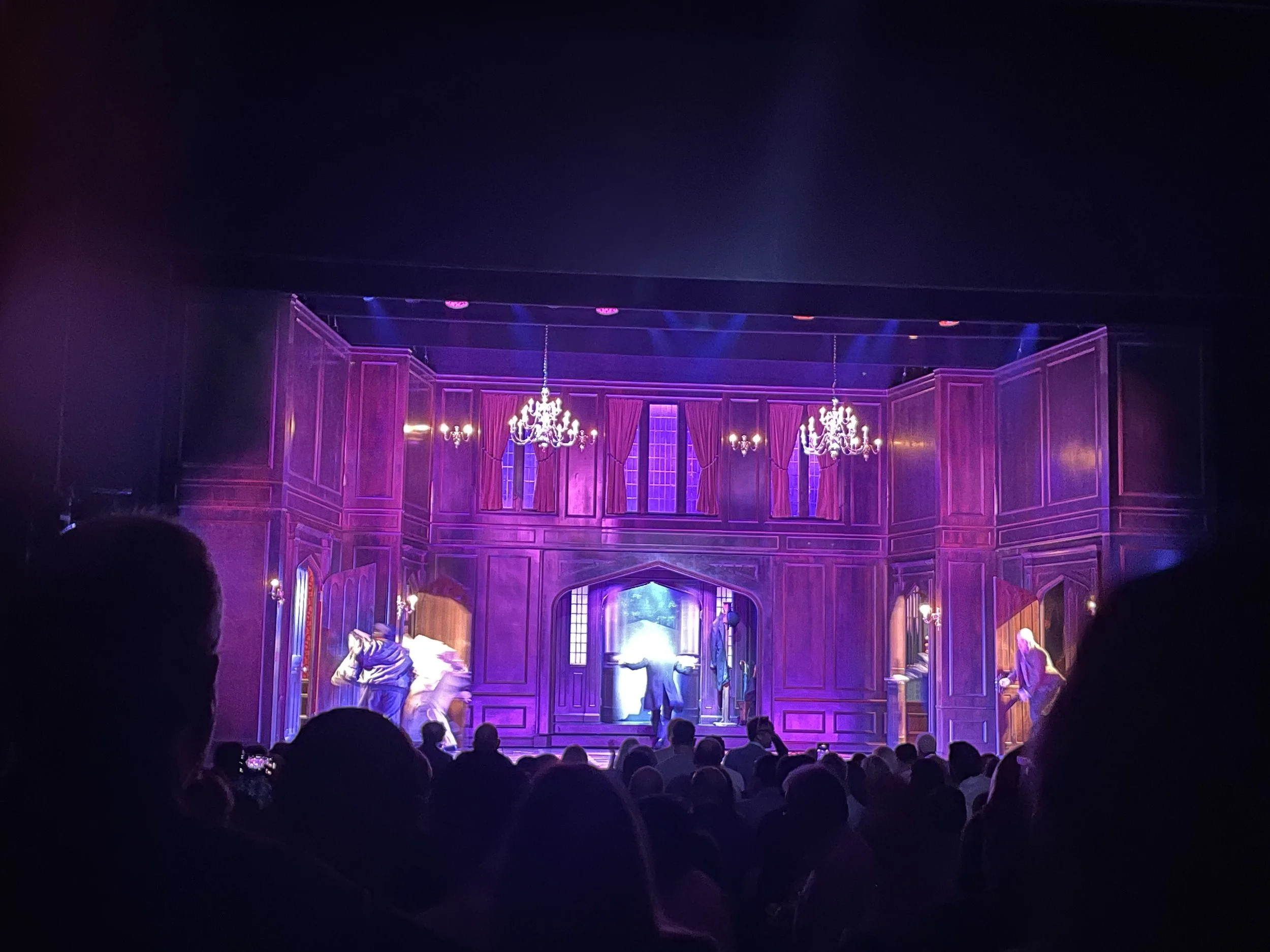 The lovely set and the cast of CLUE Live on Stage! dashing around after taking a final bow.