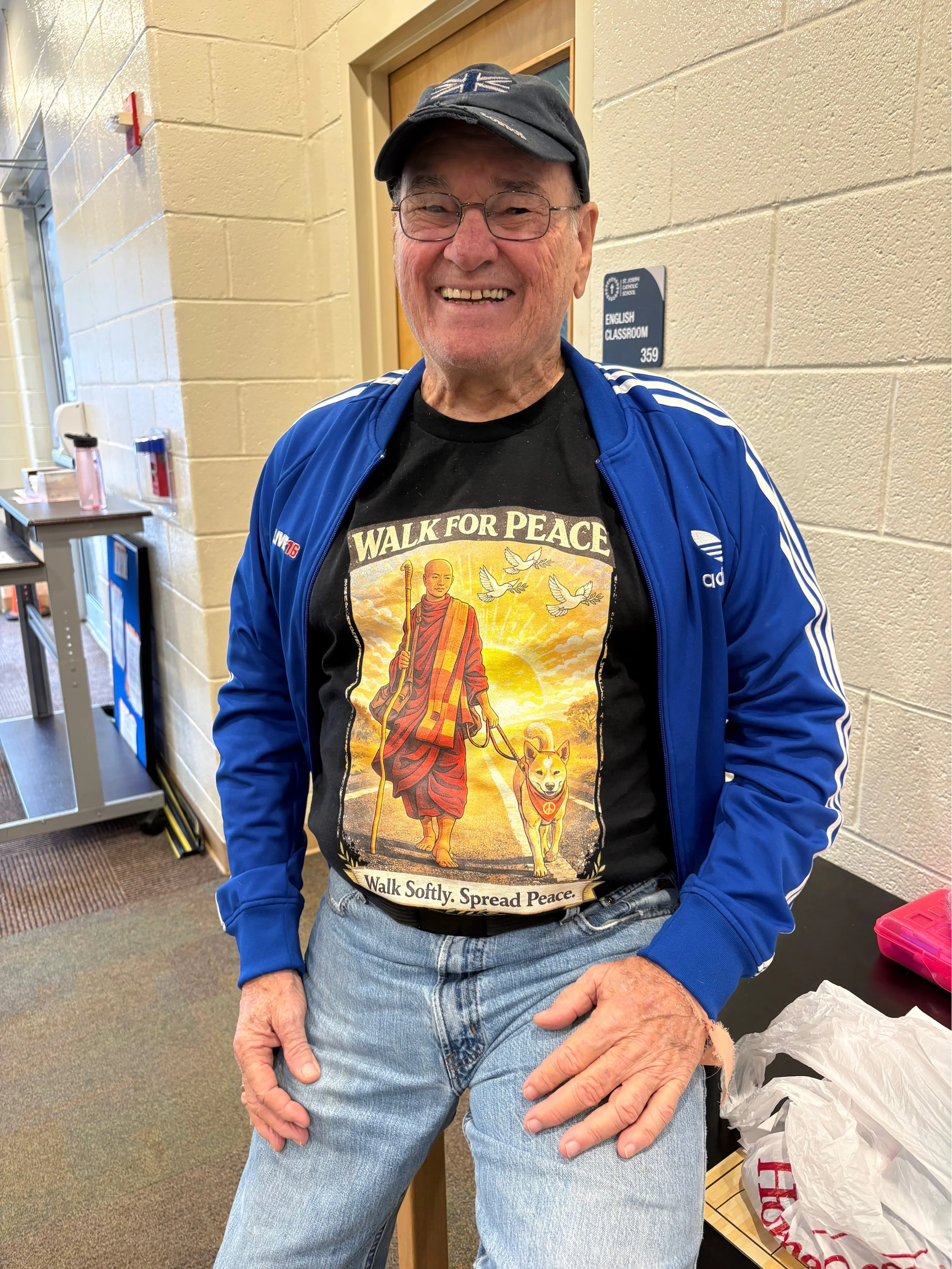 My brother Mario, who is looking great by the way, was inspired to send me this selfie wearing his Walk for Peace shirt after I posted a video of the Buddhist Monks on their 2,300 mile Walk for Peace from Texas to Washington DC. Click here to watch the video.