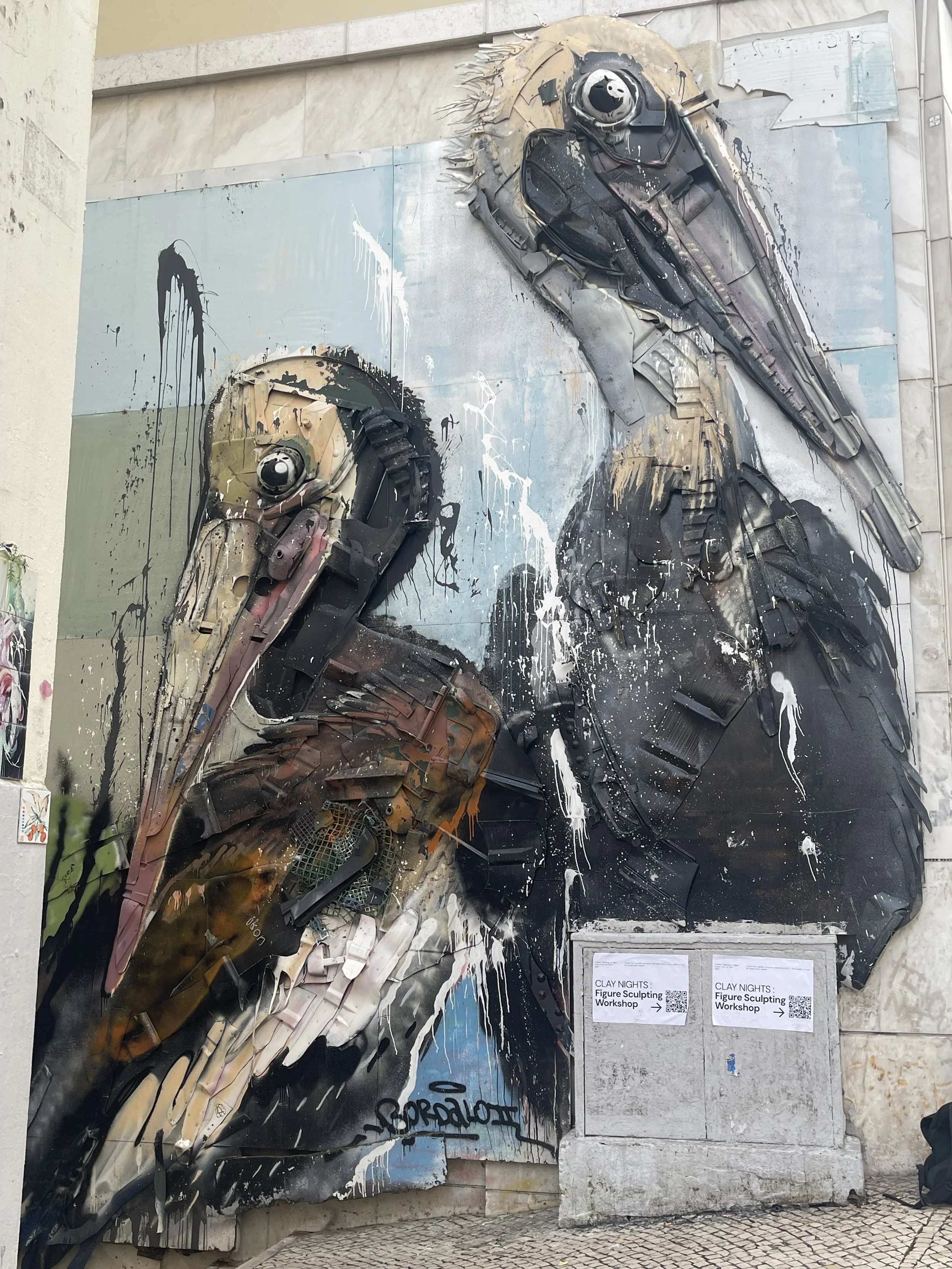 Pelican, part of “Big Trash Animals” in Portugal by artist Bordalo II. Photo by Kevin Wutzler.
