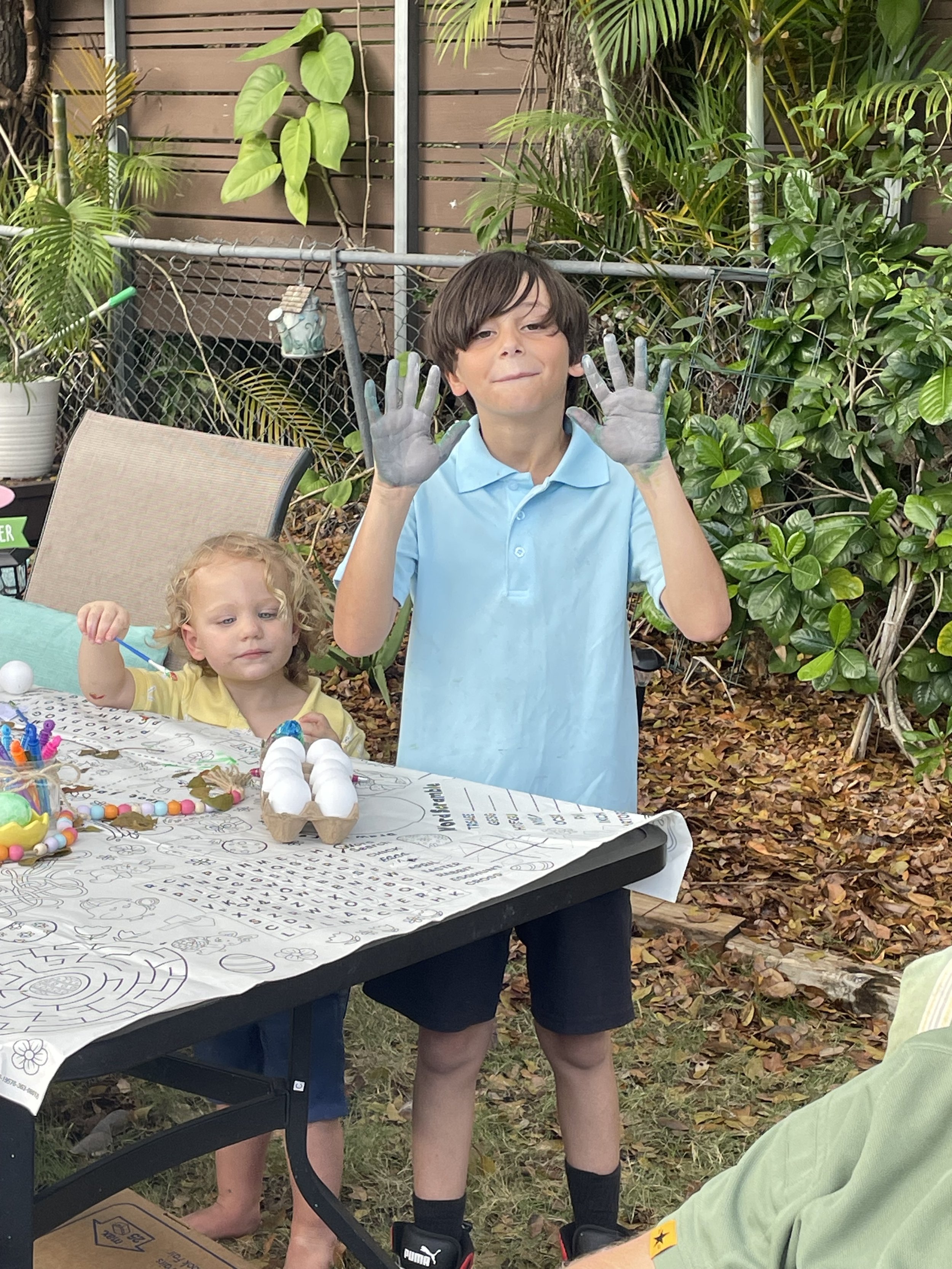 Cousins Jojo (the blondie) and Mazen, painting eggs on Easter Sunday.