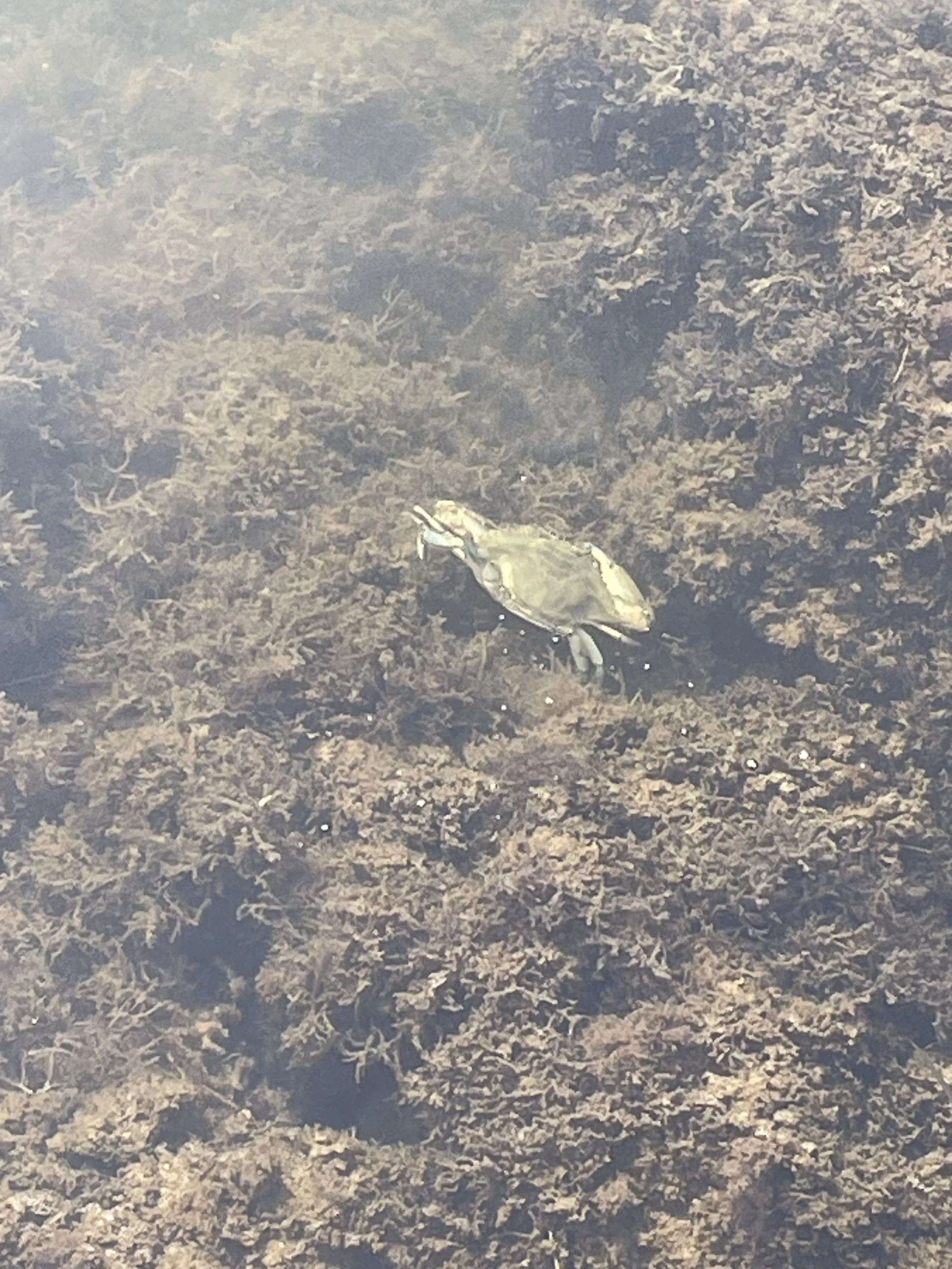 A blue crab crawling around in Biscayne Bay waters.