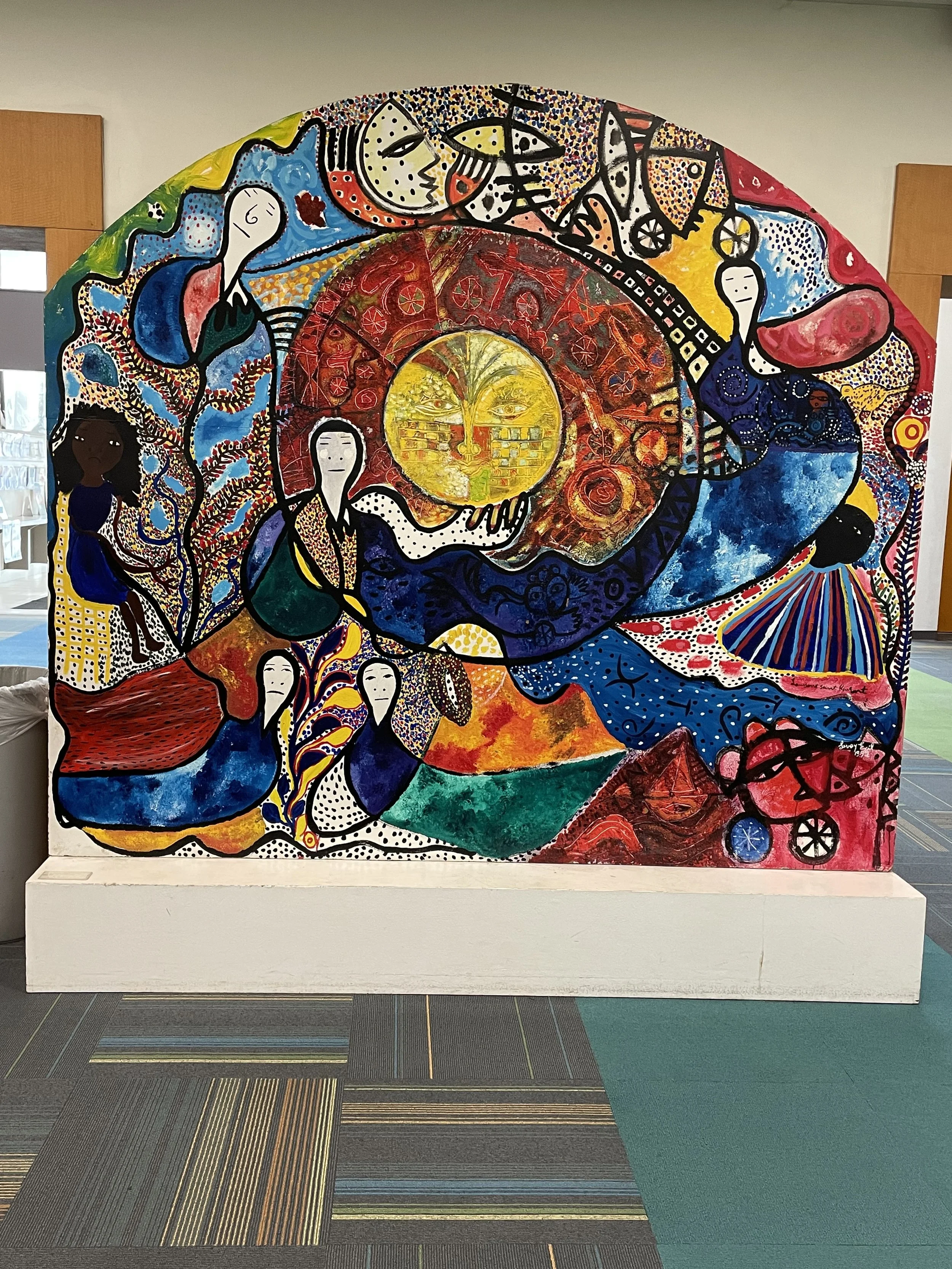 Colorful art on display at the North Miami Public Library, a highlight of the West African night event.