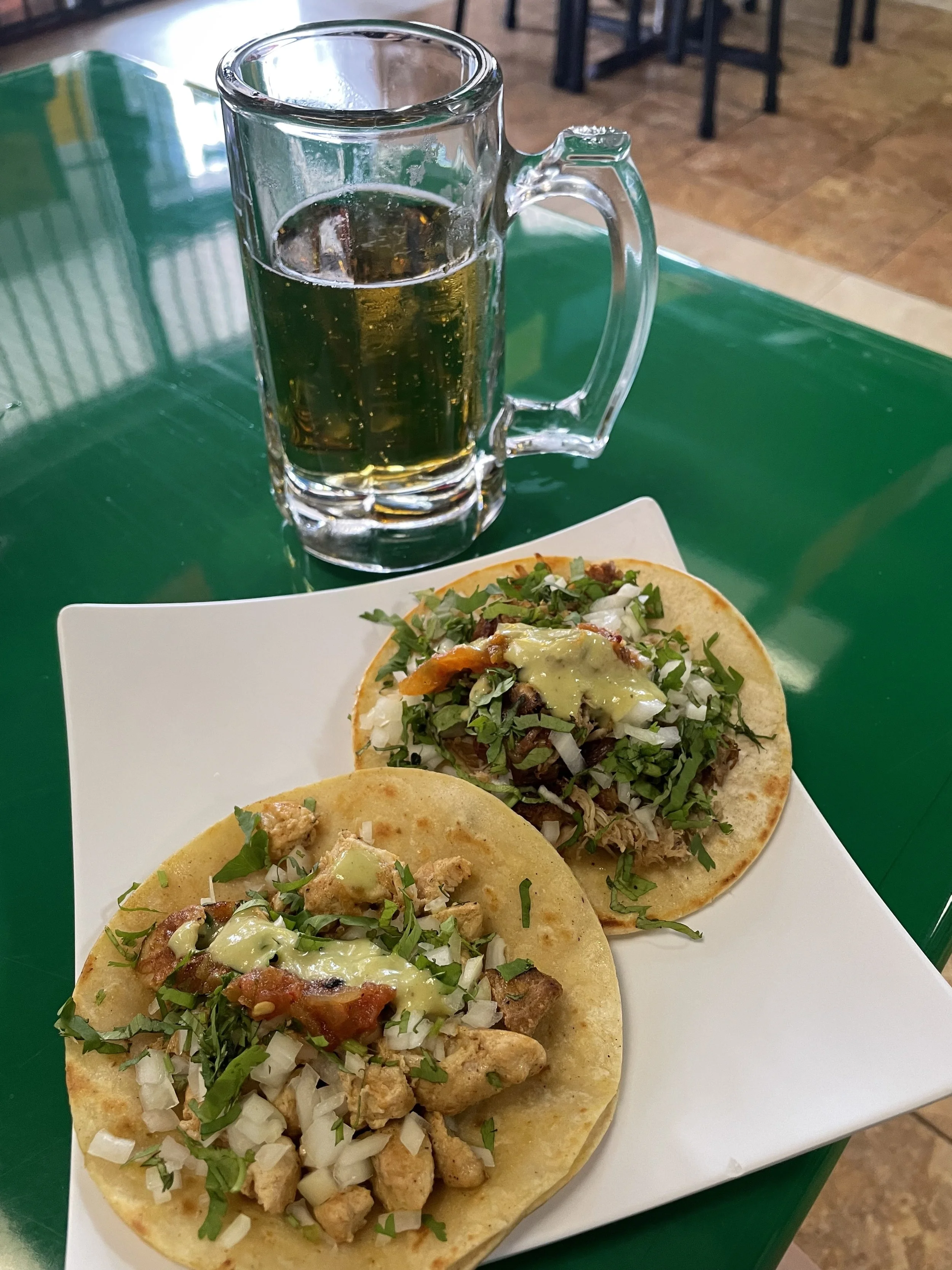On Saturday Vance and I had lunch at another little hidden gem, this one a Mexican spot near the airport called Taqueria los Potrillos. The tacos are delicious and inexpensive. I had chicken and carnitas with a nice frosty Modelo draft beer. I recommend it if you love authentic, no fuss Mexican food.