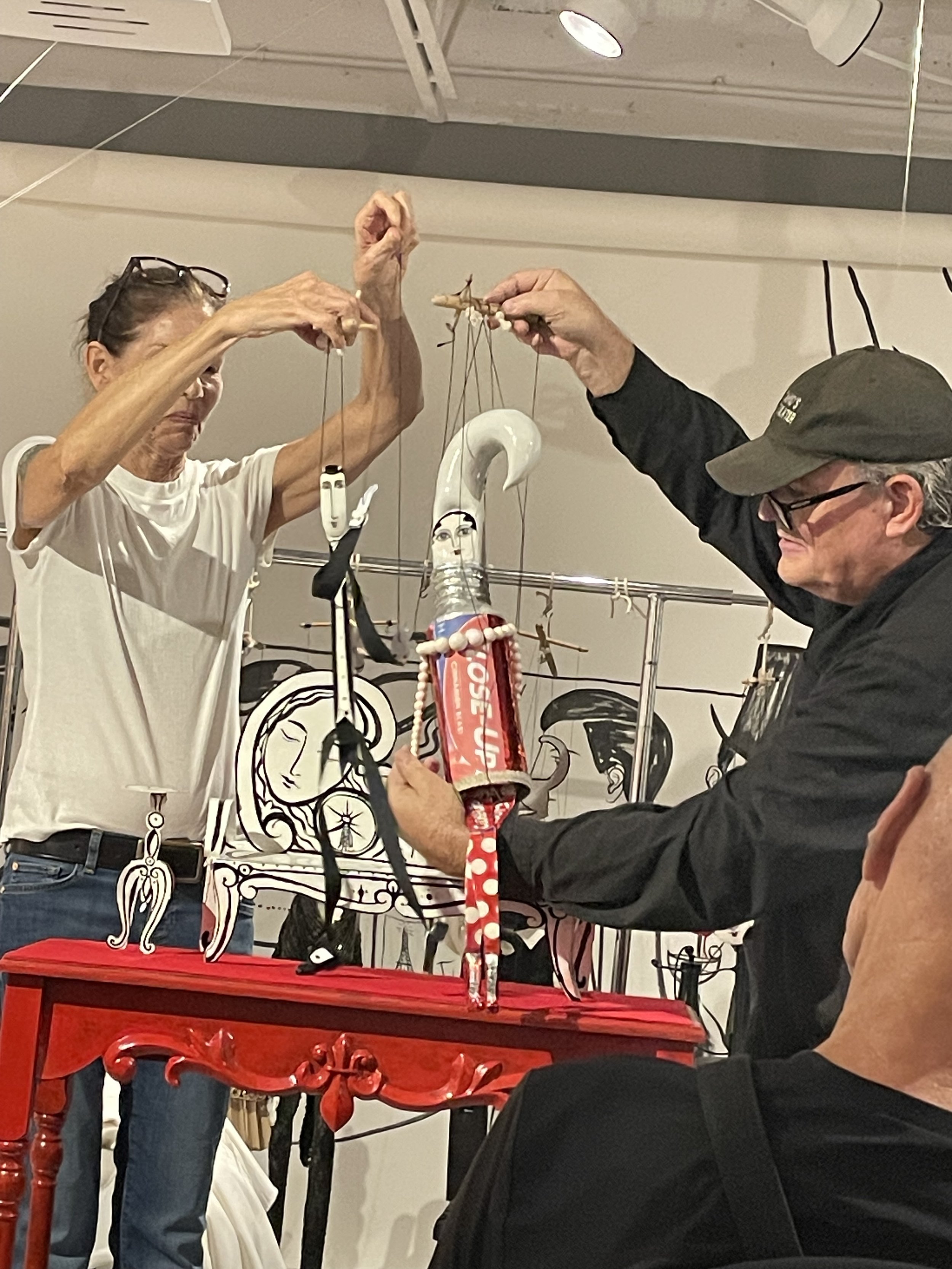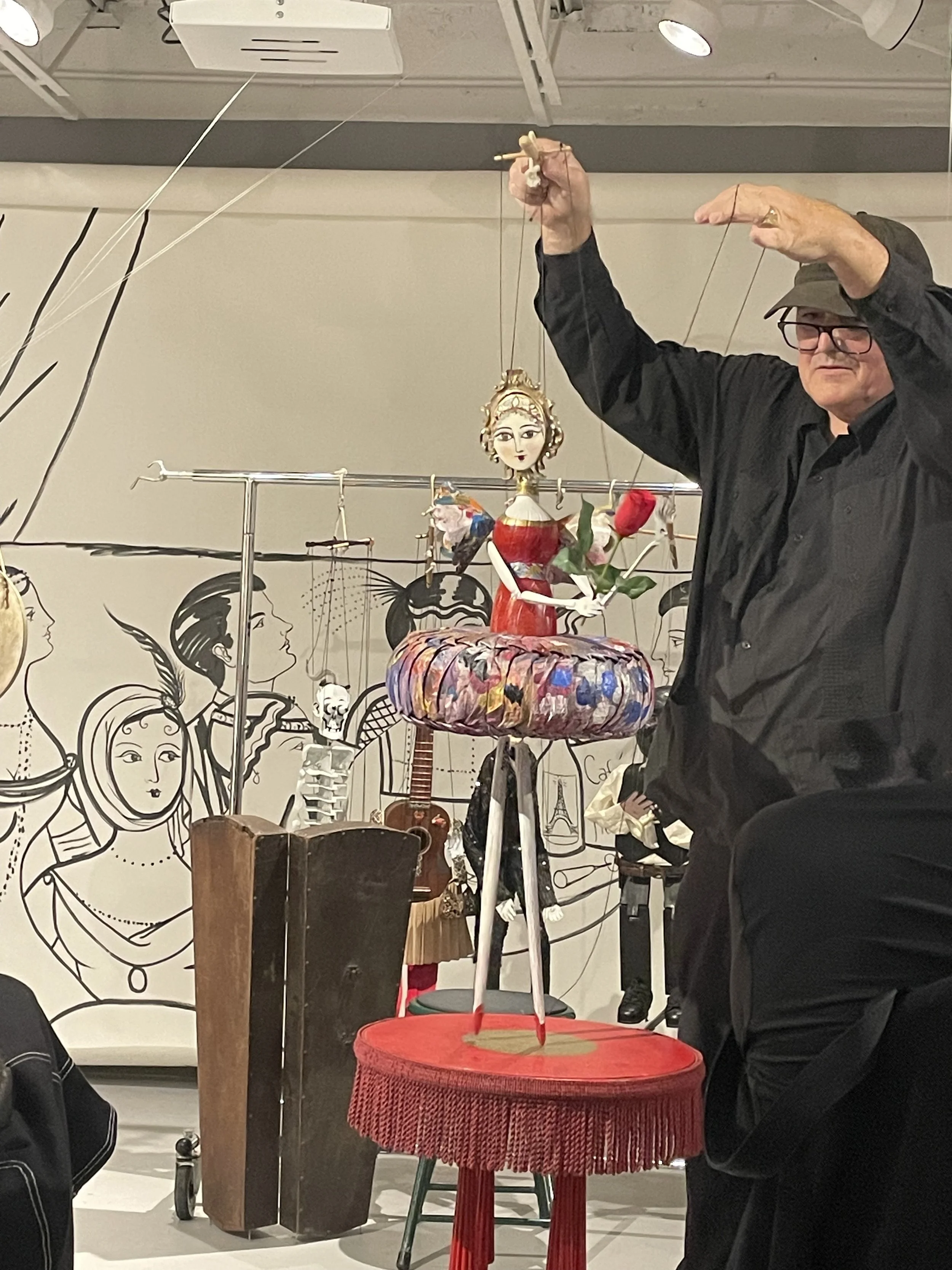 Pablo Cano maneuvering one of his whimsical marionettes during Sunday’s show.