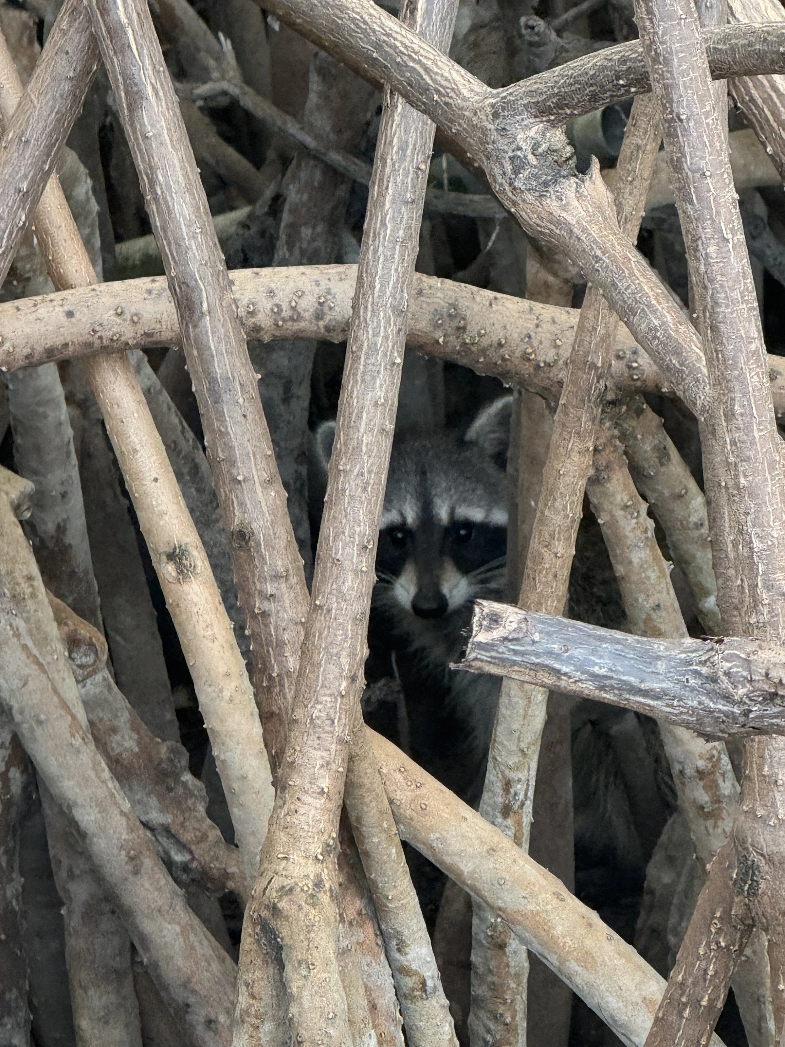 Little raccoon peeking through the mangrove branches. Photo by Michelle W.