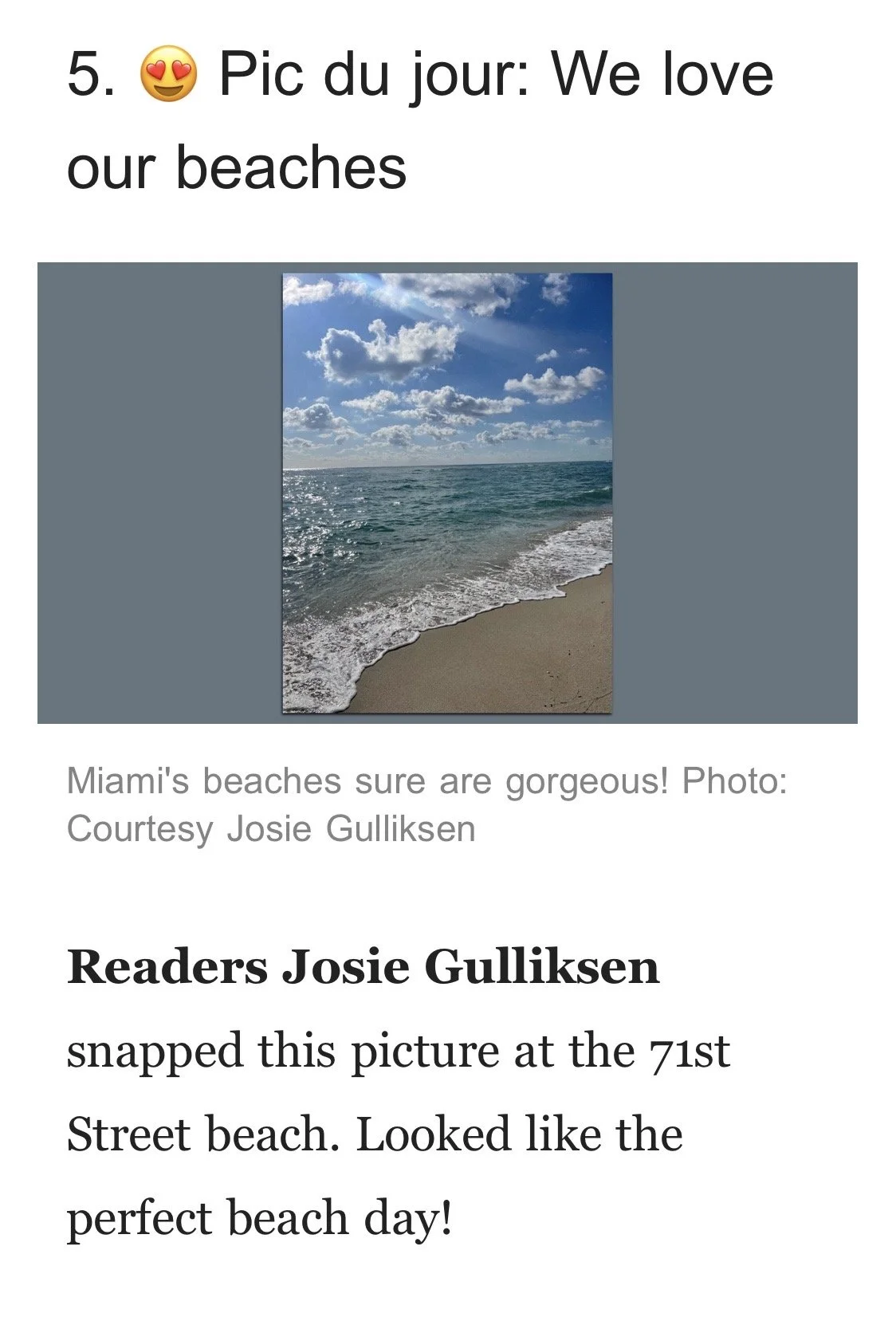 That’s all I’ve got for this week and below is my parting shot, Axios Miami used my beach shot in their newsletter this week!