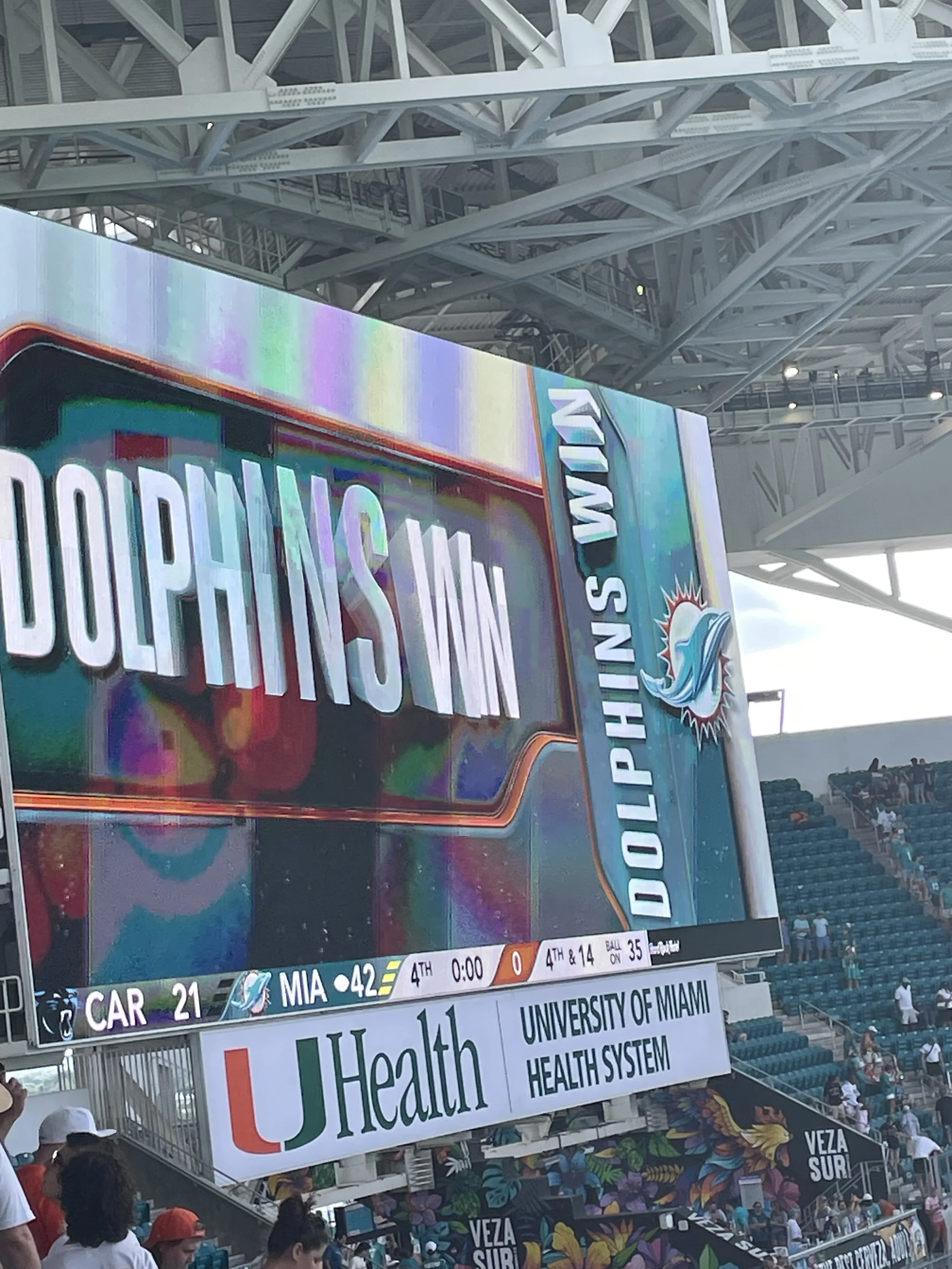 Sunday Nick and I watched the Miami Dolphins trounce the Carolina Panthers at Hard Rock Stadium. The game got off to a rocky start but they turned it up and never relented. They’re now first in the AFC East. This Sunday will be the big test against the very talented Philadelphia Eagles in Philly.